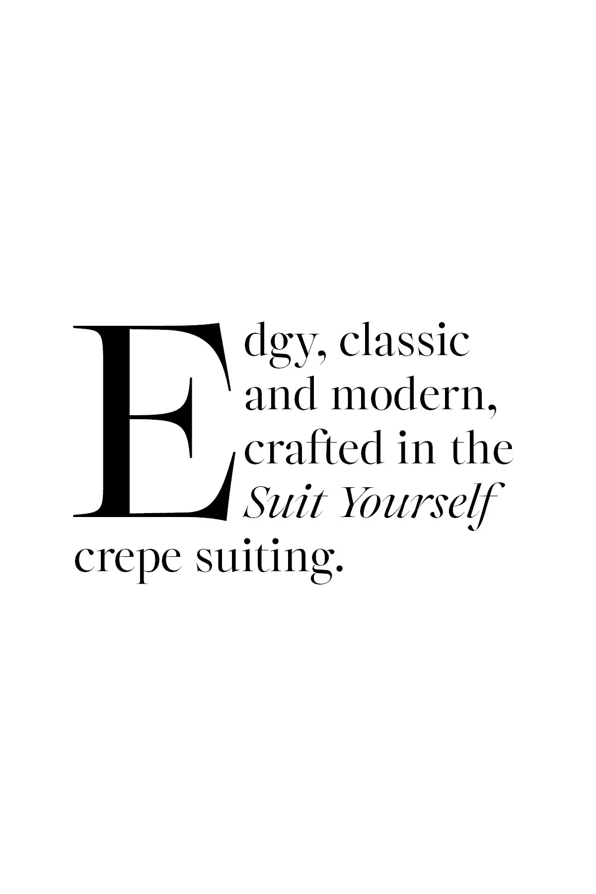Relaxed shaping and a soft tailored fit, we’re bringing back a wardrobe staple, the ‘Blazer’s Edge’ blazer. Edgy, classic and modern, crafted in the ‘Suit Yourself’ crepe suiting, our signature Cooper blazer is designed for versatility and easy styling. Fastening at the front with a single cream button, and trimmed with sport stripe tape, wear with the matching ‘Walk with Me’ trouser for every day suiting, or pair back with denim and jeans for a casual, sporty look.