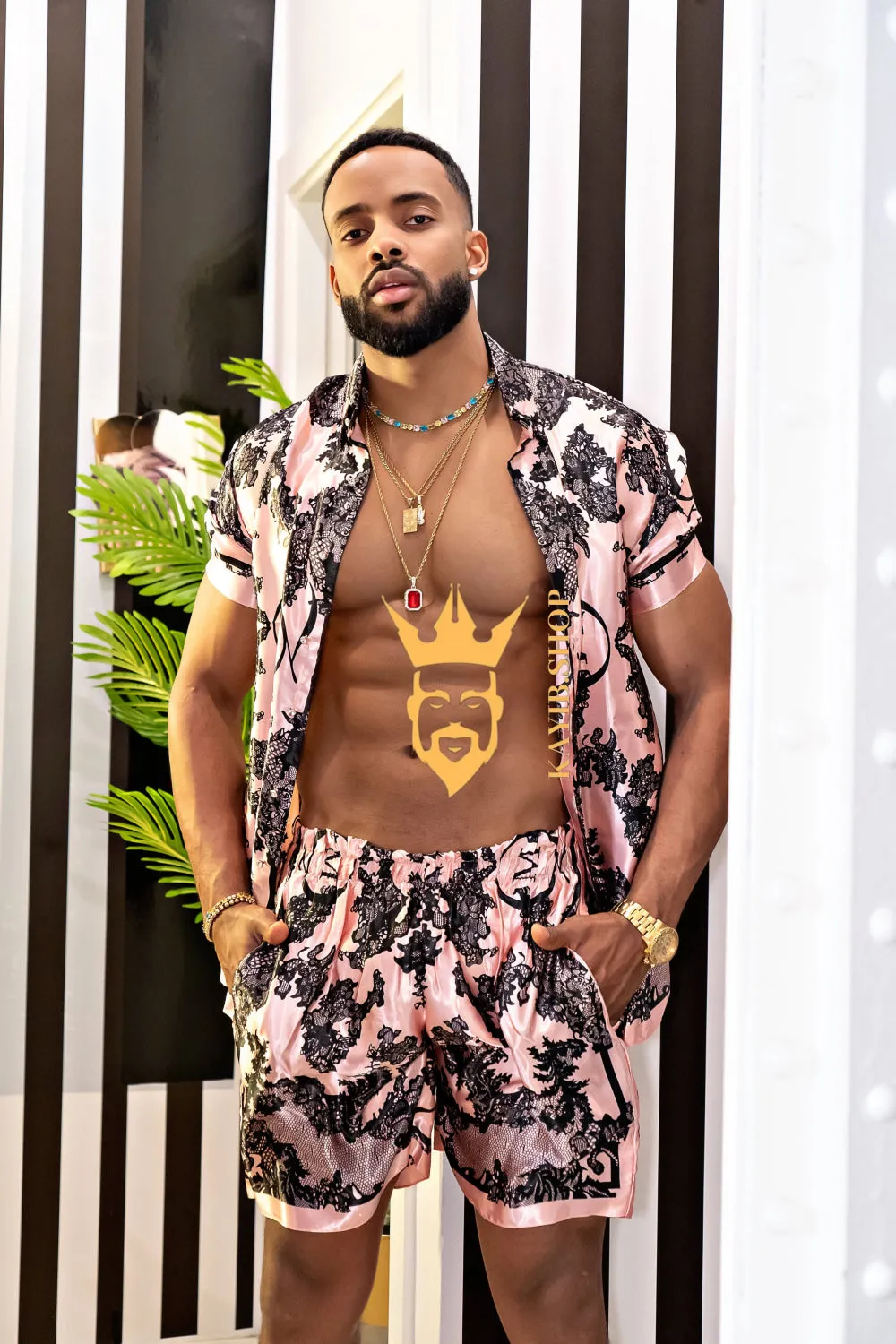 Don't settle for ordinary when you can have extraordinary. Explore our handmade men's silk outfits collection and elevate your style with the boho spirit. Crafted from pure silk and satin, these short-sleeve button-down shirts feature the beloved Barocco print, making them perfect for festivals, raves, and summer fashion.