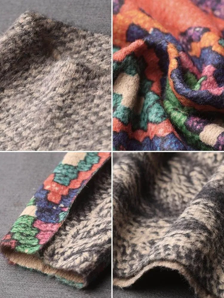 This turtleneck printed knitted sweater is the perfect way to protect yourself from the cold this winter. With a full length design, it's perfect for layering over your favorite outfits to keep you warm all day long. The stunning print is sure to turn heads, and the soft fabric will keep you comfortable all day long. This is a must-have piece for your winter wardrobe!